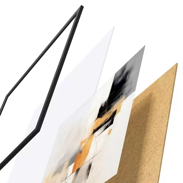 Plakat składa się z ramy, pleksi, wydrukowanego obrazu i podkładu z płyty wiórowej. Plakat można natychmiast zawiesić na ścianie dzięki uchwytom z tyłu.