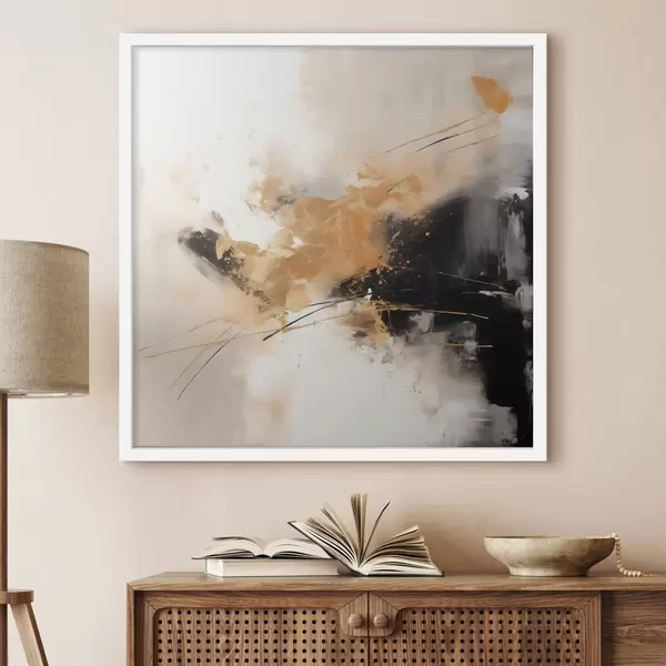 Plakat Pomarańczowe i czarne pociągnięcia pędzla, nowoczesna abstrakcja f46327
