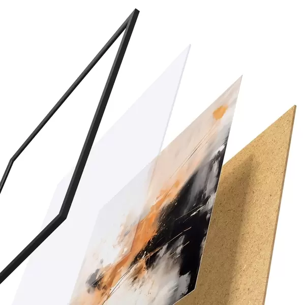 Plakat składa się z ramy, pleksi, wydrukowanego obrazu i podkładu z płyty wiórowej. Plakat można natychmiast zawiesić na ścianie dzięki uchwytom z tyłu.