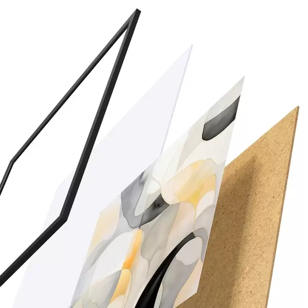 Plakat składa się z ramy, pleksi, wydrukowanego obrazu i podkładu z płyty wiórowej. Plakat można natychmiast zawiesić na ścianie dzięki uchwytom z tyłu.