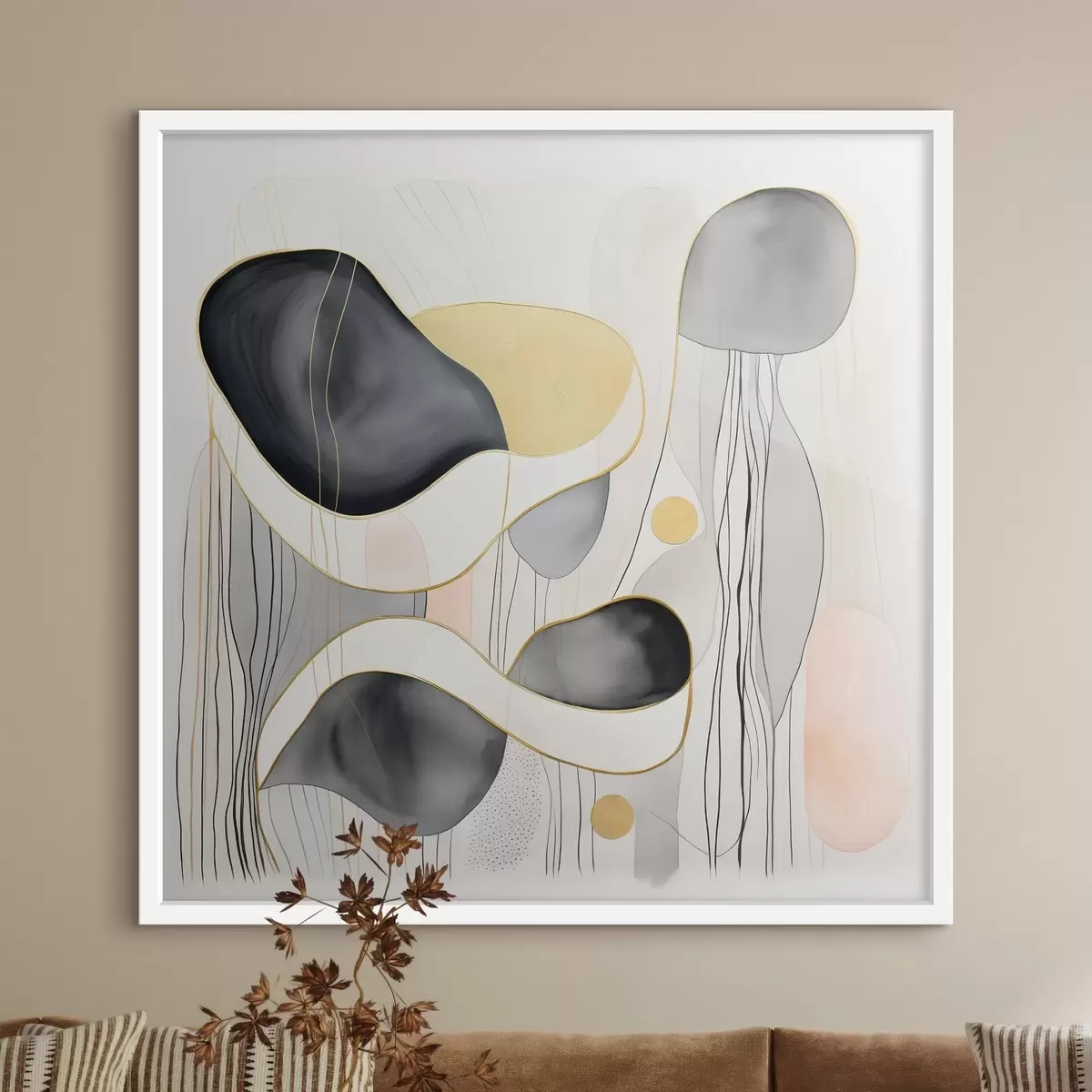Plakat Neutralna kompozycja, szare i piaskowe plamy w nowoczesnym stylu f46334