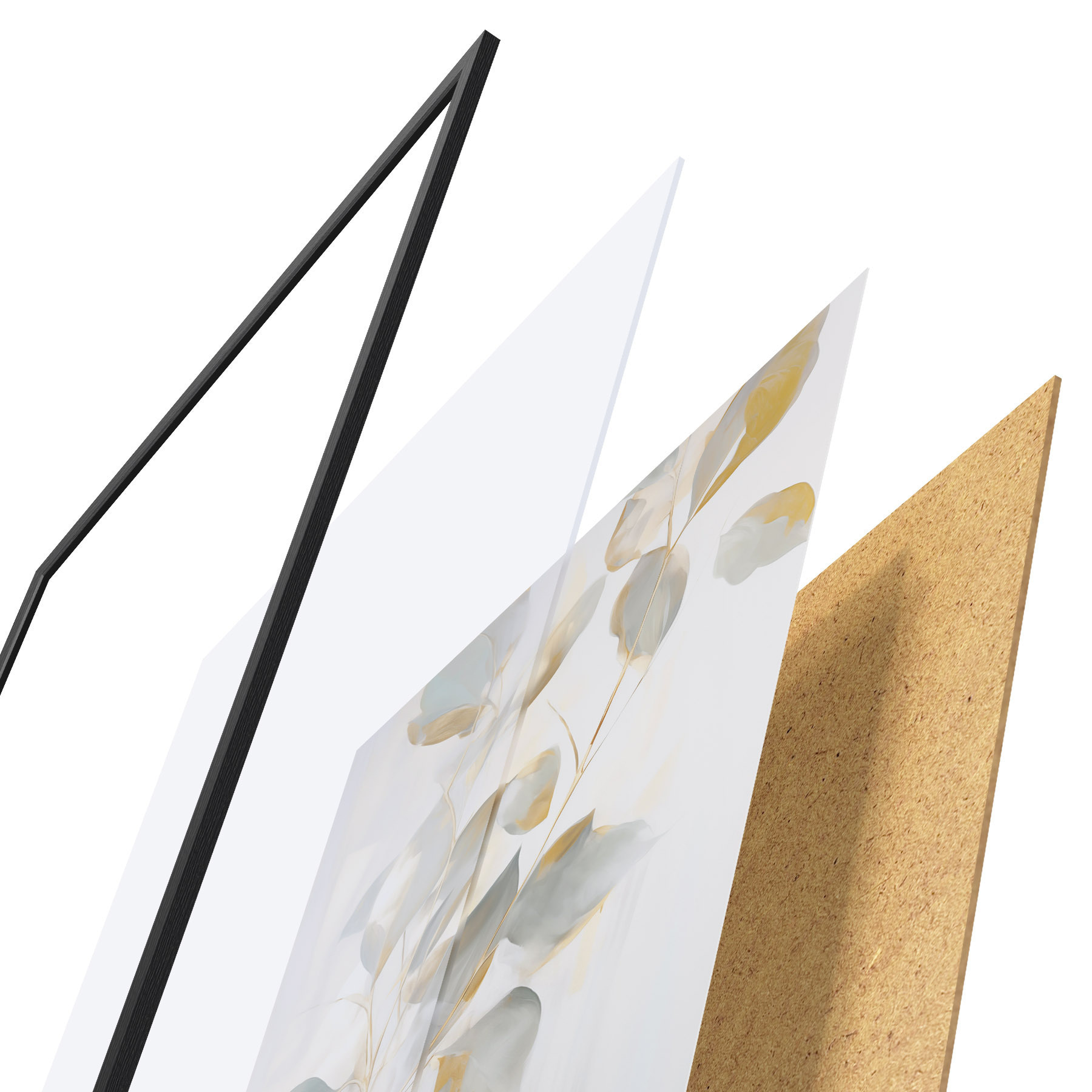 Plakat składa się z ramy, pleksi, wydrukowanego obrazu i podkładu z płyty wiórowej. Plakat można natychmiast zawiesić na ścianie dzięki uchwytom z tyłu.