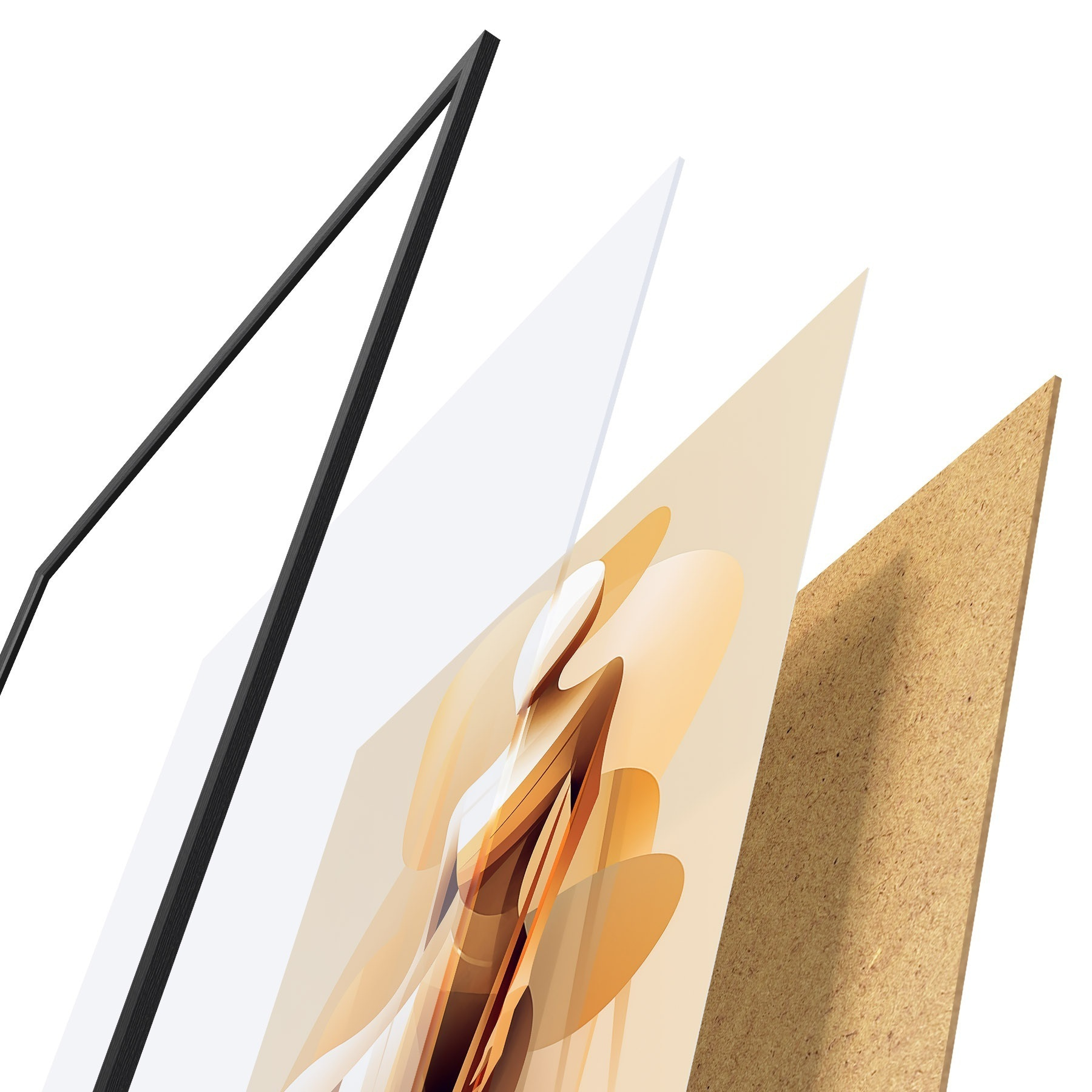 Plakat składa się z ramy, pleksi, wydrukowanego obrazu i podkładu z płyty wiórowej. Plakat można natychmiast zawiesić na ścianie dzięki uchwytom z tyłu.