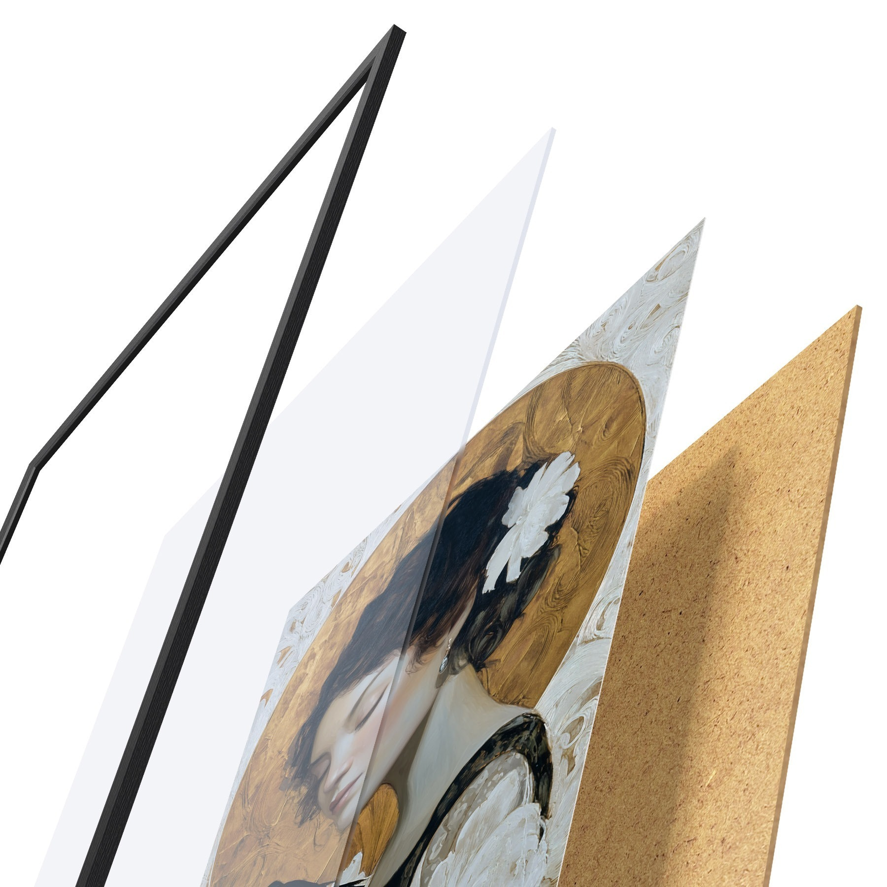 Plakat składa się z ramy, pleksi, wydrukowanego obrazu i podkładu z płyty wiórowej. Plakat można natychmiast zawiesić na ścianie dzięki uchwytom z tyłu.