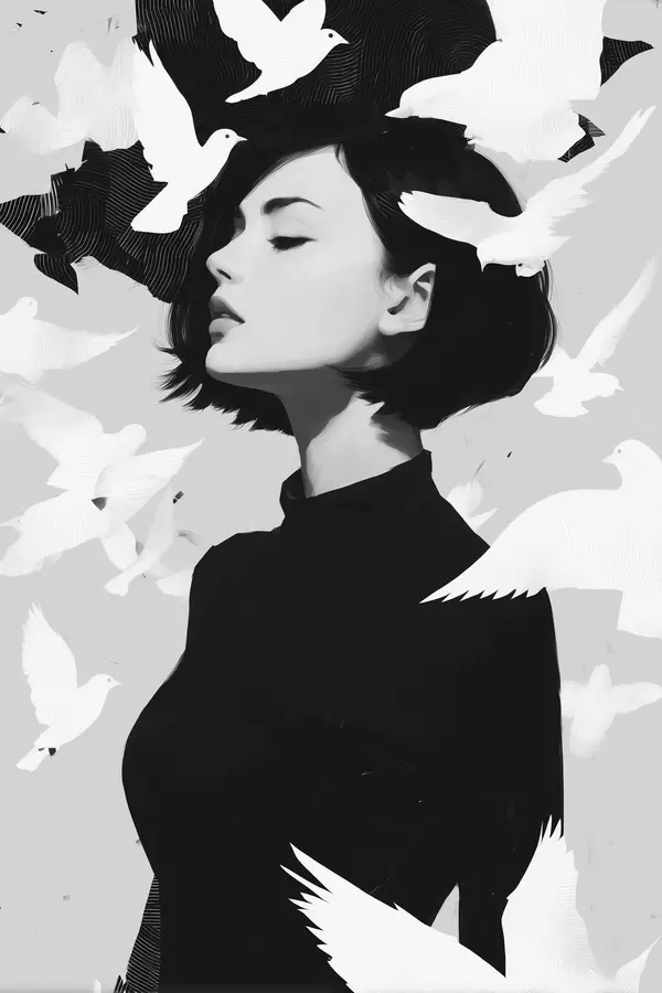 Poster Dziewczyna z ptakami Nr f46369