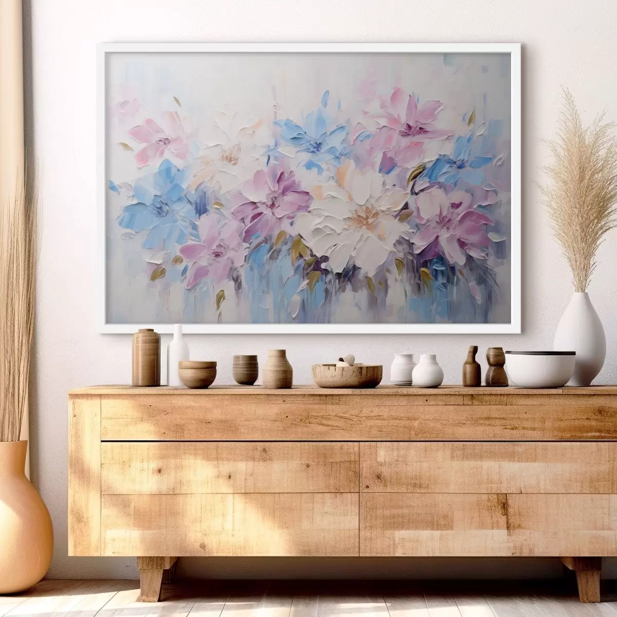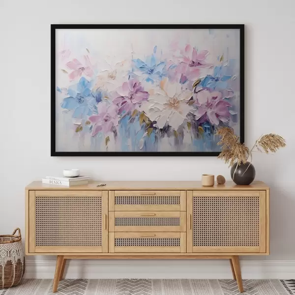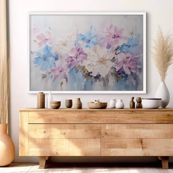 Sprzedajemy obrazy na blejtramie - jest to drewniana rama, na którą naciągnięte jest płótno. Tego obrazu nie trzeba oprawiać; można go powiesić bezpośrednio na ścianie.