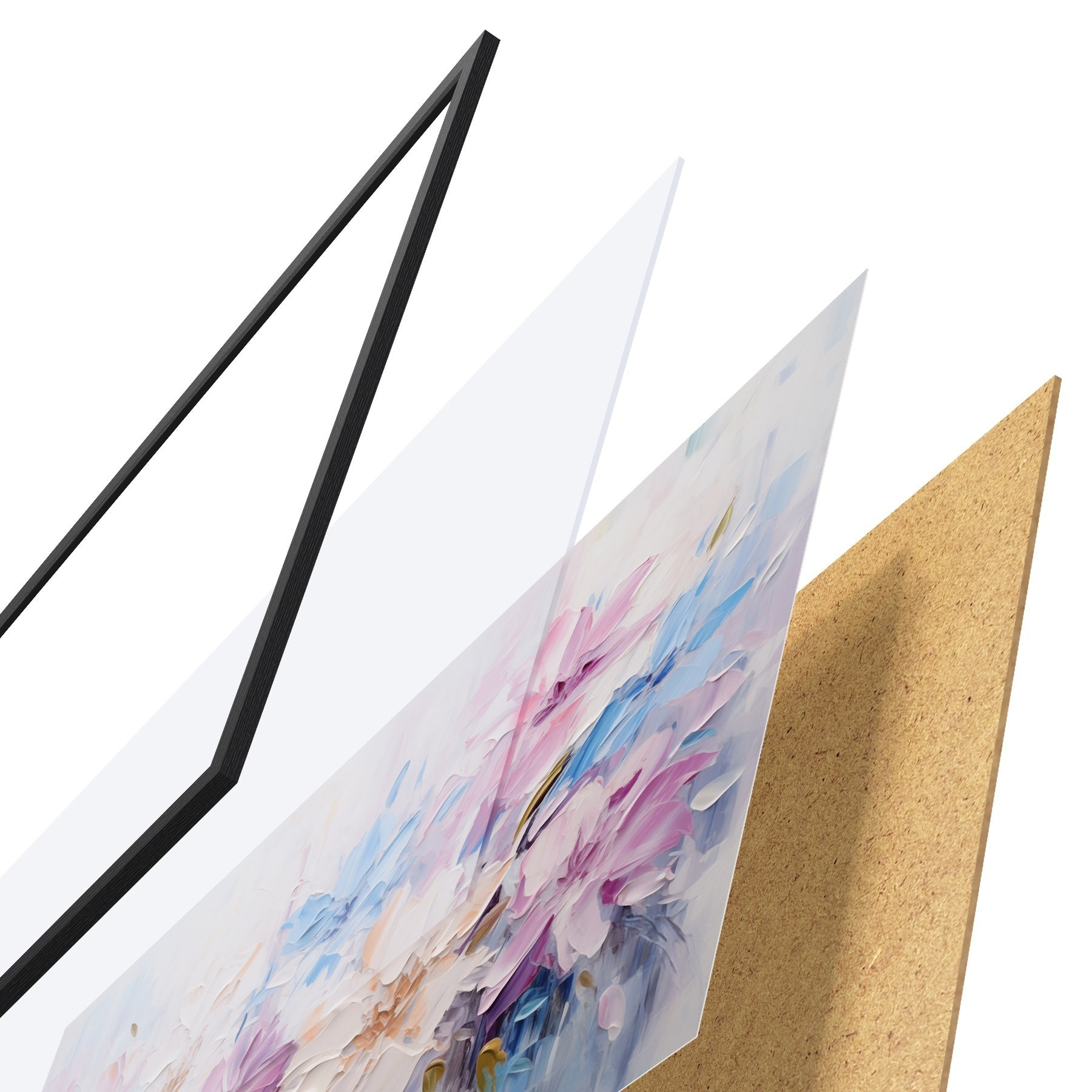 Plakat składa się z ramy, pleksi, wydrukowanego obrazu i podkładu z płyty wiórowej. Plakat można natychmiast zawiesić na ścianie dzięki uchwytom z tyłu.