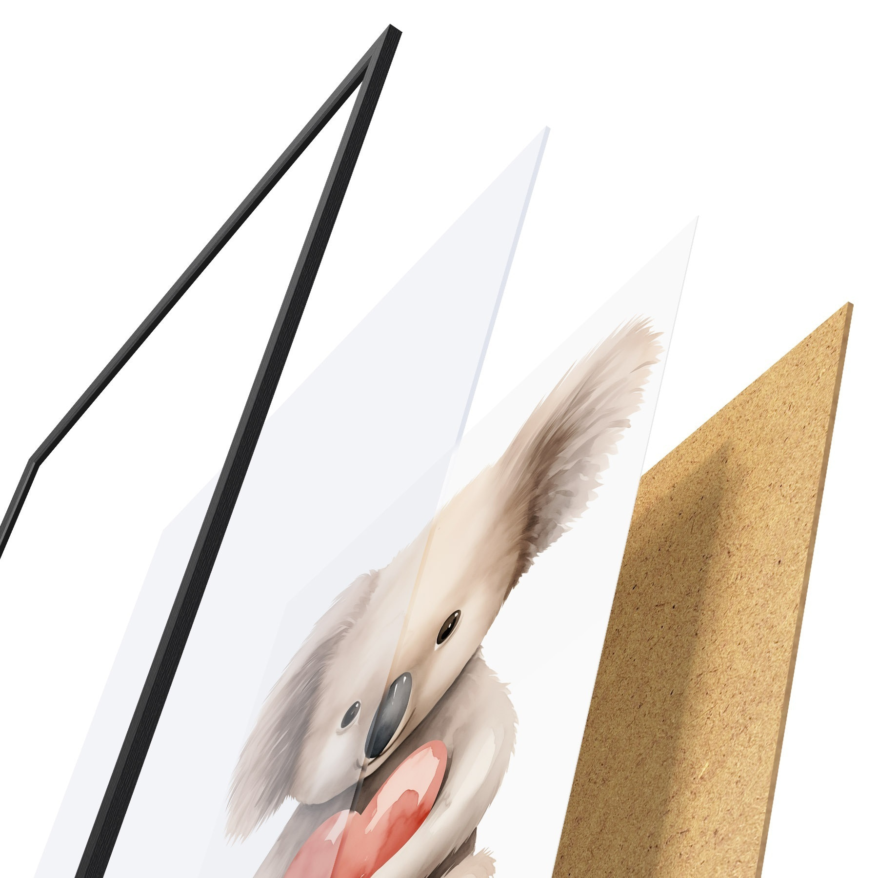 Plakat składa się z ramy, pleksi, wydrukowanego obrazu i podkładu z płyty wiórowej. Plakat można natychmiast zawiesić na ścianie dzięki uchwytom z tyłu.