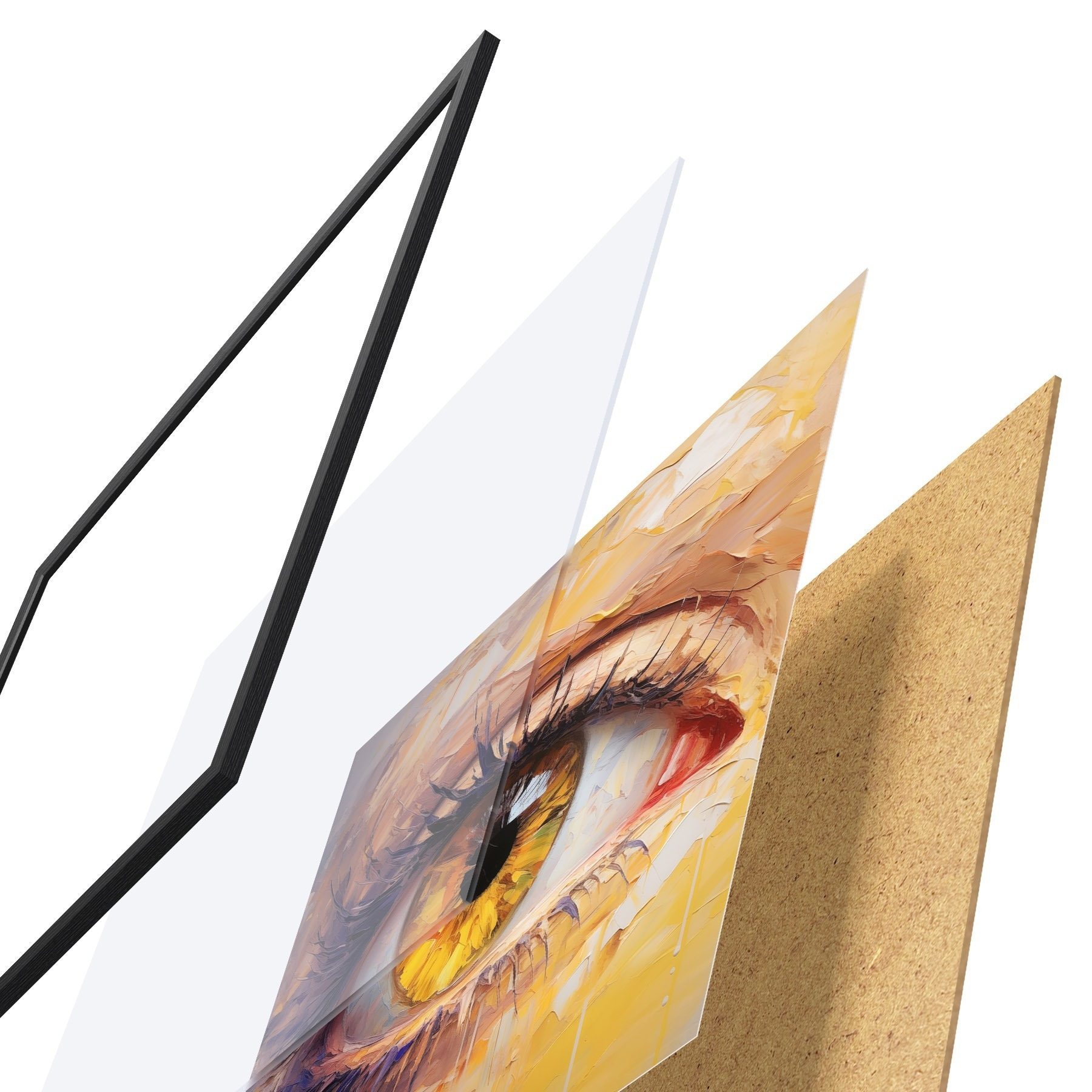 Plakat składa się z ramy, pleksi, wydrukowanego obrazu i podkładu z płyty wiórowej. Plakat można natychmiast zawiesić na ścianie dzięki uchwytom z tyłu.