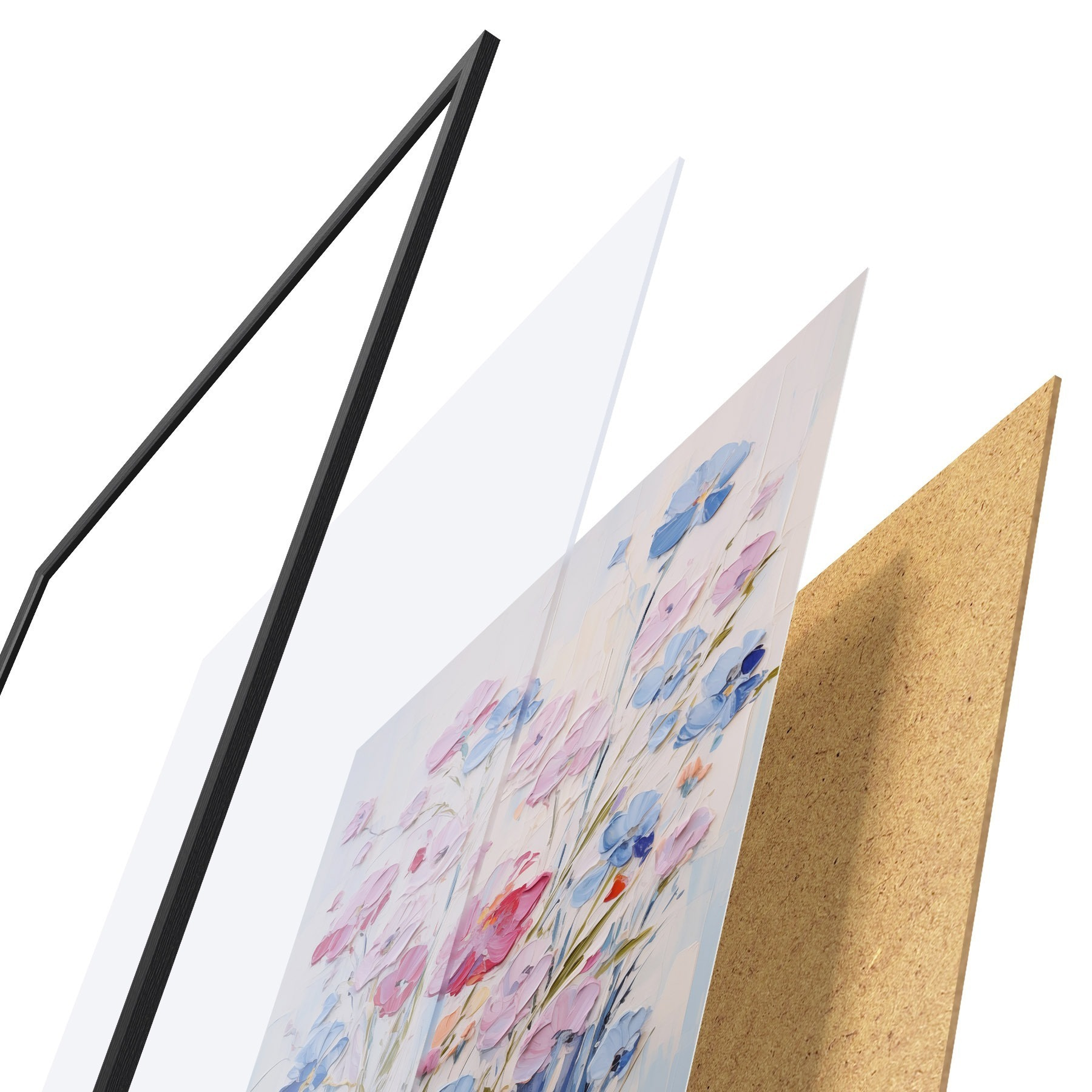 Plakat składa się z ramy, pleksi, wydrukowanego obrazu i podkładu z płyty wiórowej. Plakat można natychmiast zawiesić na ścianie dzięki uchwytom z tyłu.