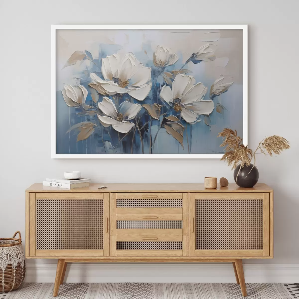 Sprzedajemy obrazy na blejtramie - jest to drewniana rama, na którą naciągnięte jest płótno. Tego obrazu nie trzeba oprawiać; można go powiesić bezpośrednio na ścianie.