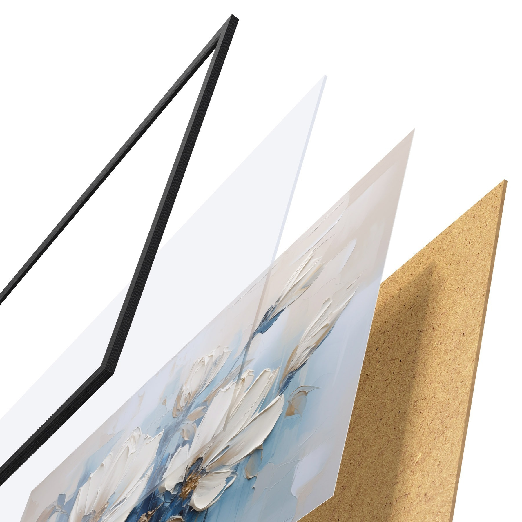 Plakat składa się z ramy, pleksi, wydrukowanego obrazu i podkładu z płyty wiórowej. Plakat można natychmiast zawiesić na ścianie dzięki uchwytom z tyłu.