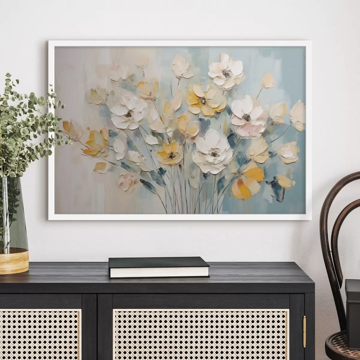 Sprzedajemy obrazy na blejtramie - jest to drewniana rama, na którą naciągnięte jest płótno. Tego obrazu nie trzeba oprawiać; można go powiesić bezpośrednio na ścianie.