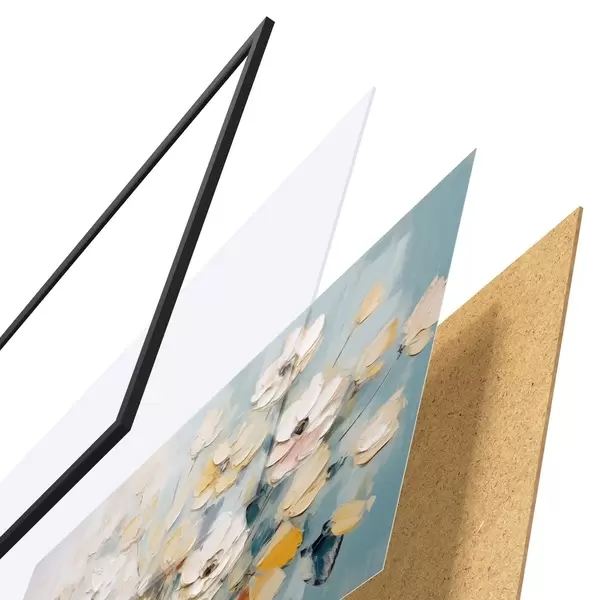 Plakat składa się z ramy, pleksi, wydrukowanego obrazu i podkładu z płyty wiórowej. Plakat można natychmiast zawiesić na ścianie dzięki uchwytom z tyłu.