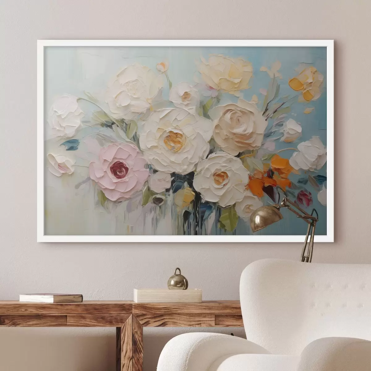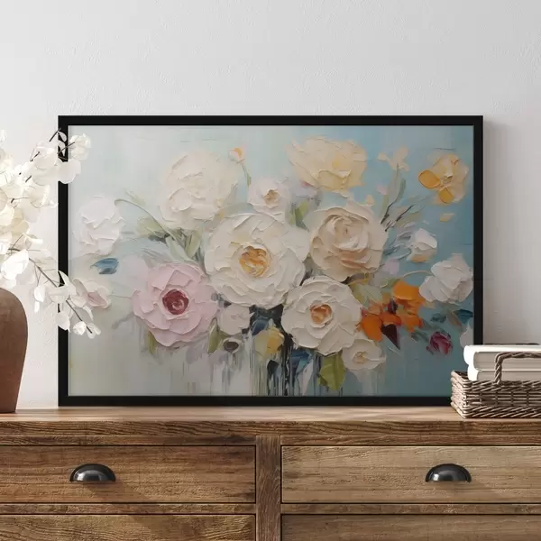 Sprzedajemy obrazy na blejtramie - jest to drewniana rama, na którą naciągnięte jest płótno. Tego obrazu nie trzeba oprawiać; można go powiesić bezpośrednio na ścianie.