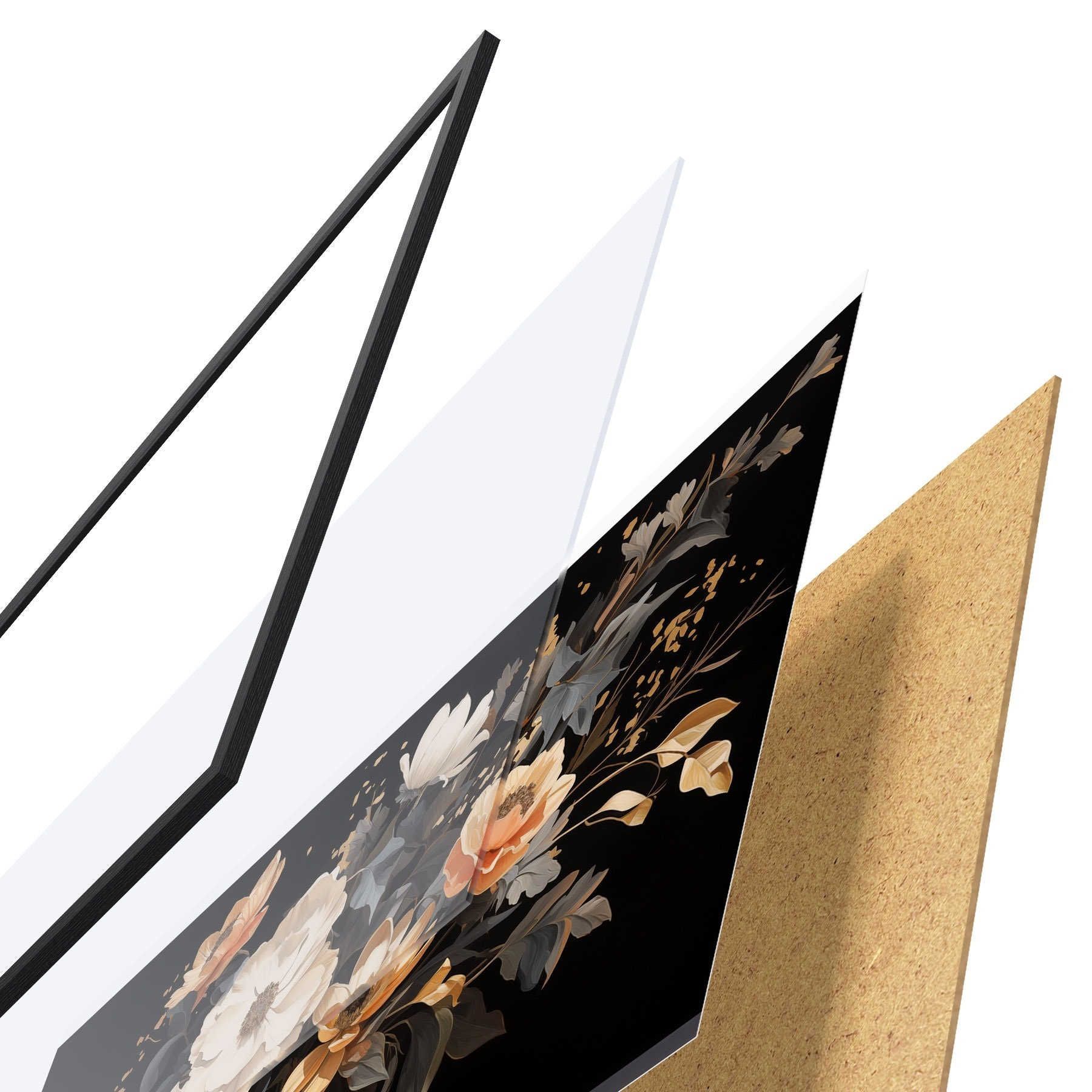 Plakat składa się z ramy, pleksi, wydrukowanego obrazu i podkładu z płyty wiórowej. Plakat można natychmiast zawiesić na ścianie dzięki uchwytom z tyłu.