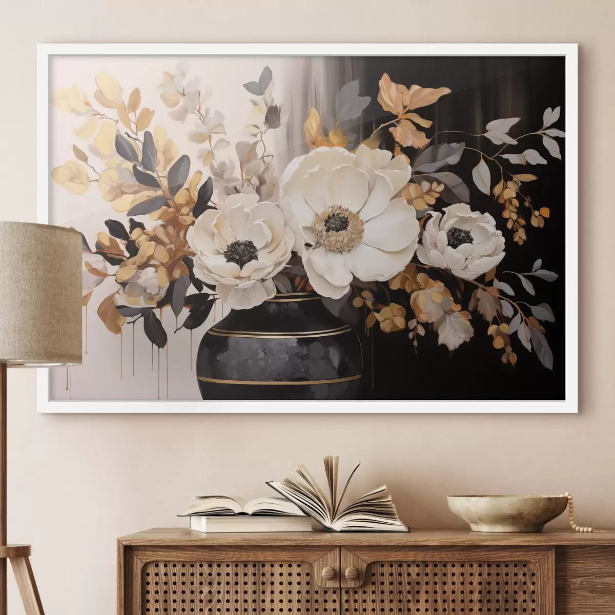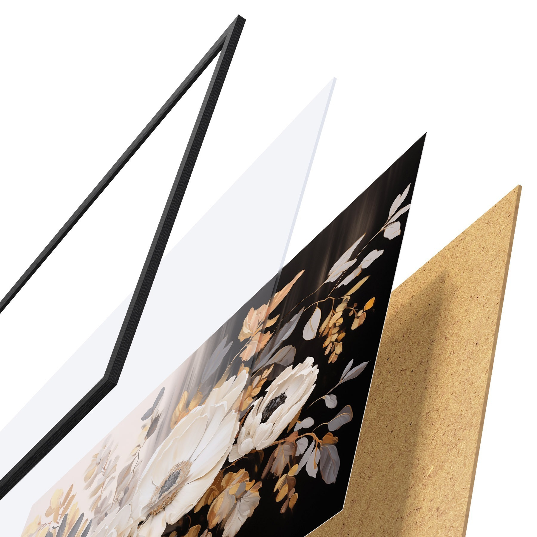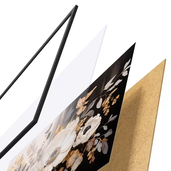 Plakat składa się z ramy, pleksi, wydrukowanego obrazu i podkładu z płyty wiórowej. Plakat można natychmiast zawiesić na ścianie dzięki uchwytom z tyłu.