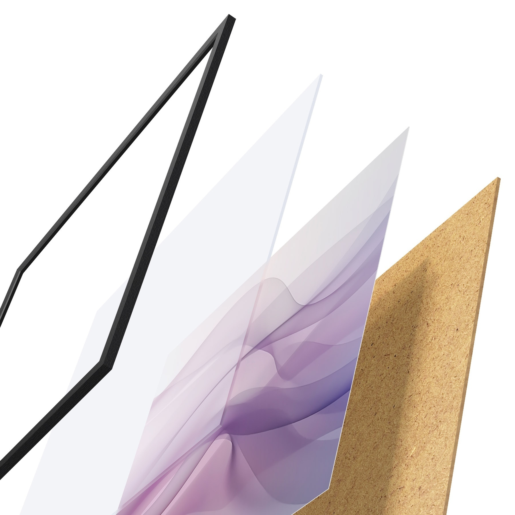 Plakat składa się z ramy, pleksi, wydrukowanego obrazu i podkładu z płyty wiórowej. Plakat można natychmiast zawiesić na ścianie dzięki uchwytom z tyłu.