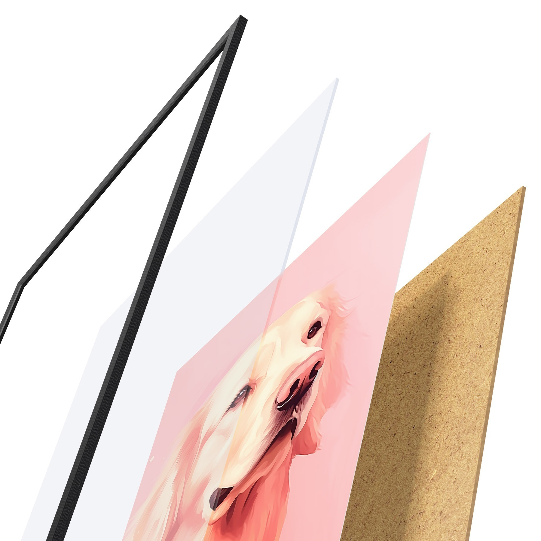 Plakat składa się z ramy, pleksi, wydrukowanego obrazu i podkładu z płyty wiórowej. Plakat można natychmiast zawiesić na ścianie dzięki uchwytom z tyłu.
