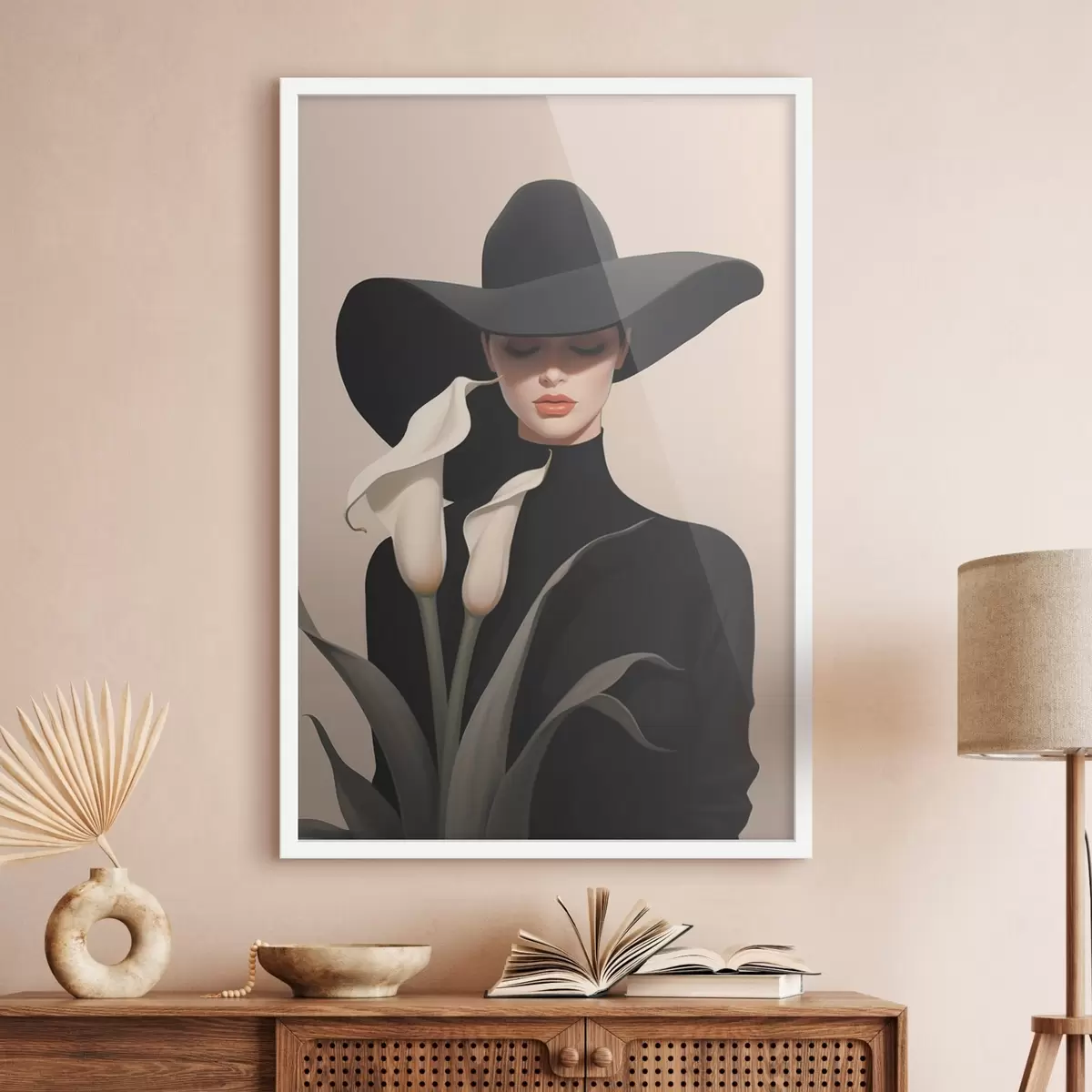 Plakat Dziewczyna w kapeluszu z kalasami f46420