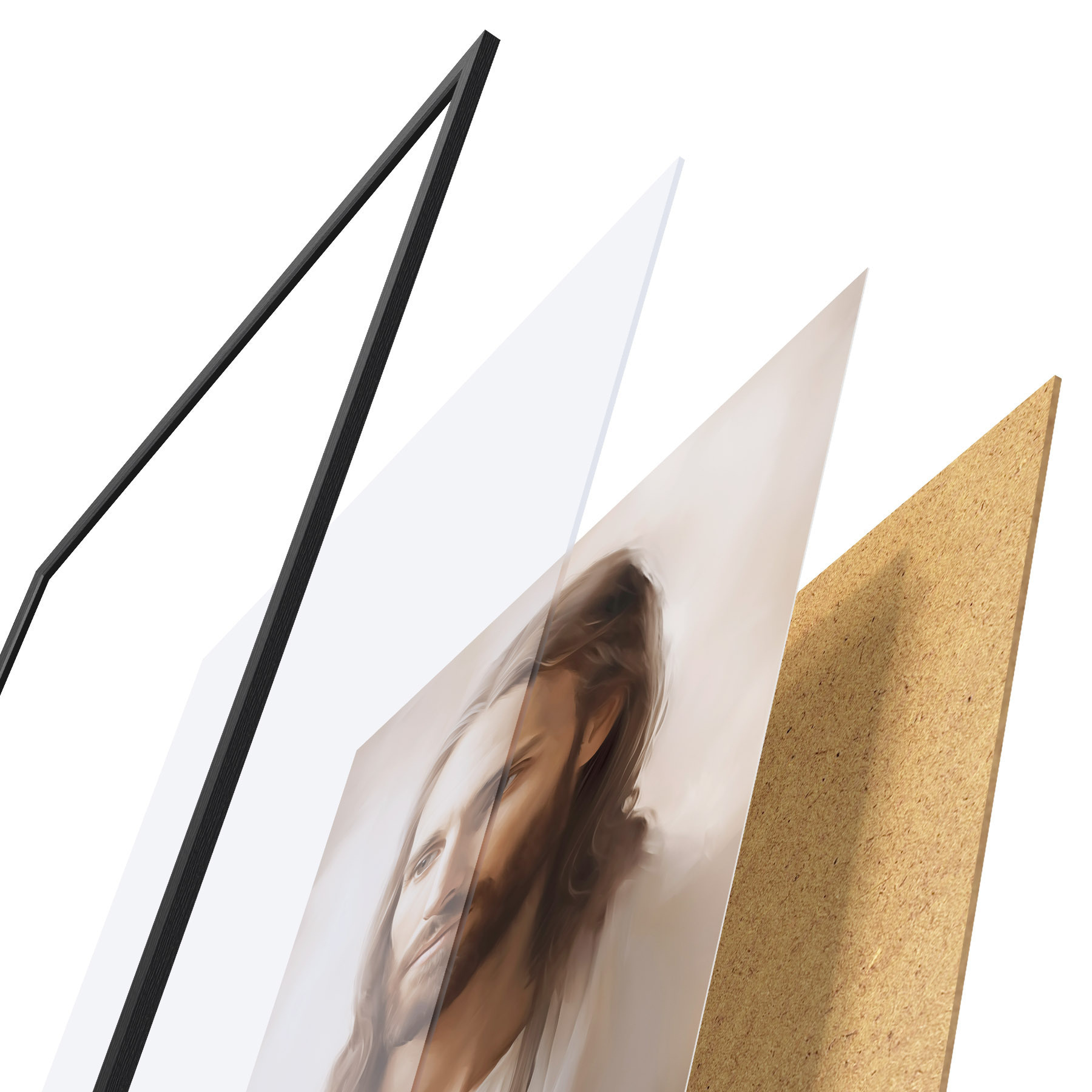 Plakat składa się z ramy, pleksi, wydrukowanego obrazu i podkładu z płyty wiórowej. Plakat można natychmiast zawiesić na ścianie dzięki uchwytom z tyłu.