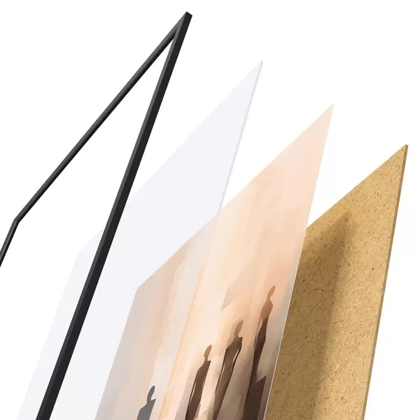 Plakat składa się z ramy, pleksi, wydrukowanego obrazu i podkładu z płyty wiórowej. Plakat można natychmiast zawiesić na ścianie dzięki uchwytom z tyłu.