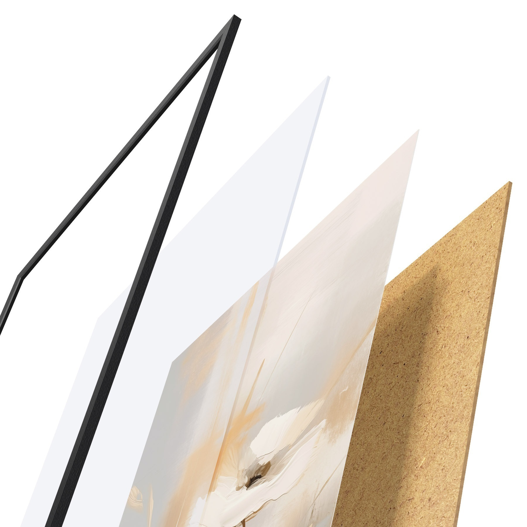 Plakat składa się z ramy, pleksi, wydrukowanego obrazu i podkładu z płyty wiórowej. Plakat można natychmiast zawiesić na ścianie dzięki uchwytom z tyłu.