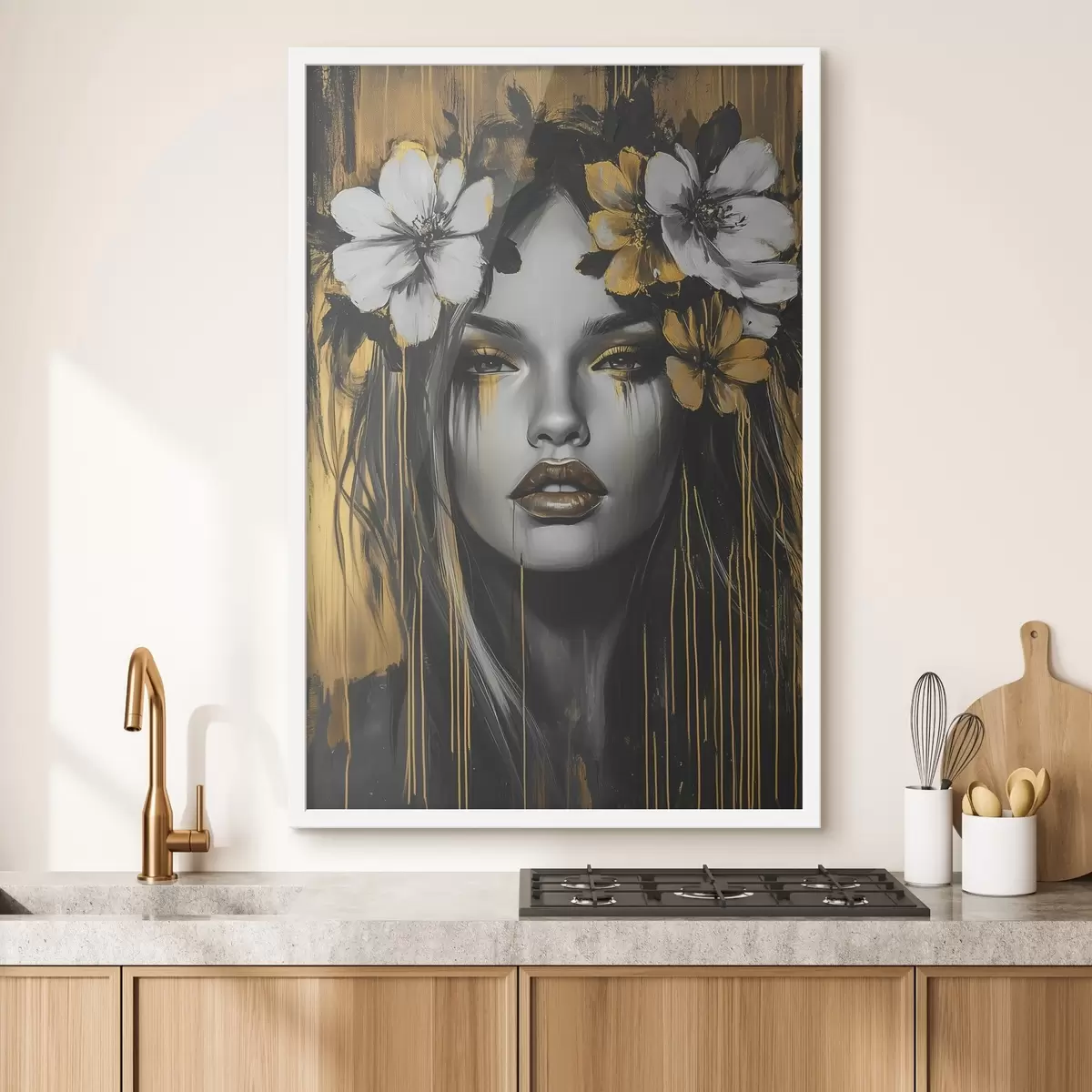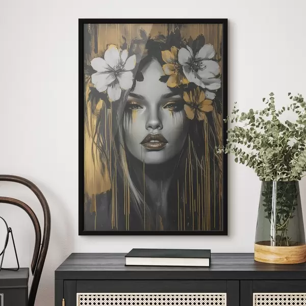 Poster Abstrakcyjny portret kobiety z kwiatami Nr f46454