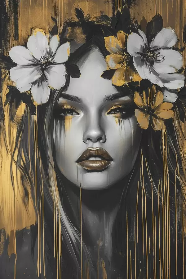 Poster Abstrakcyjny portret kobiety z kwiatami Nr f46454