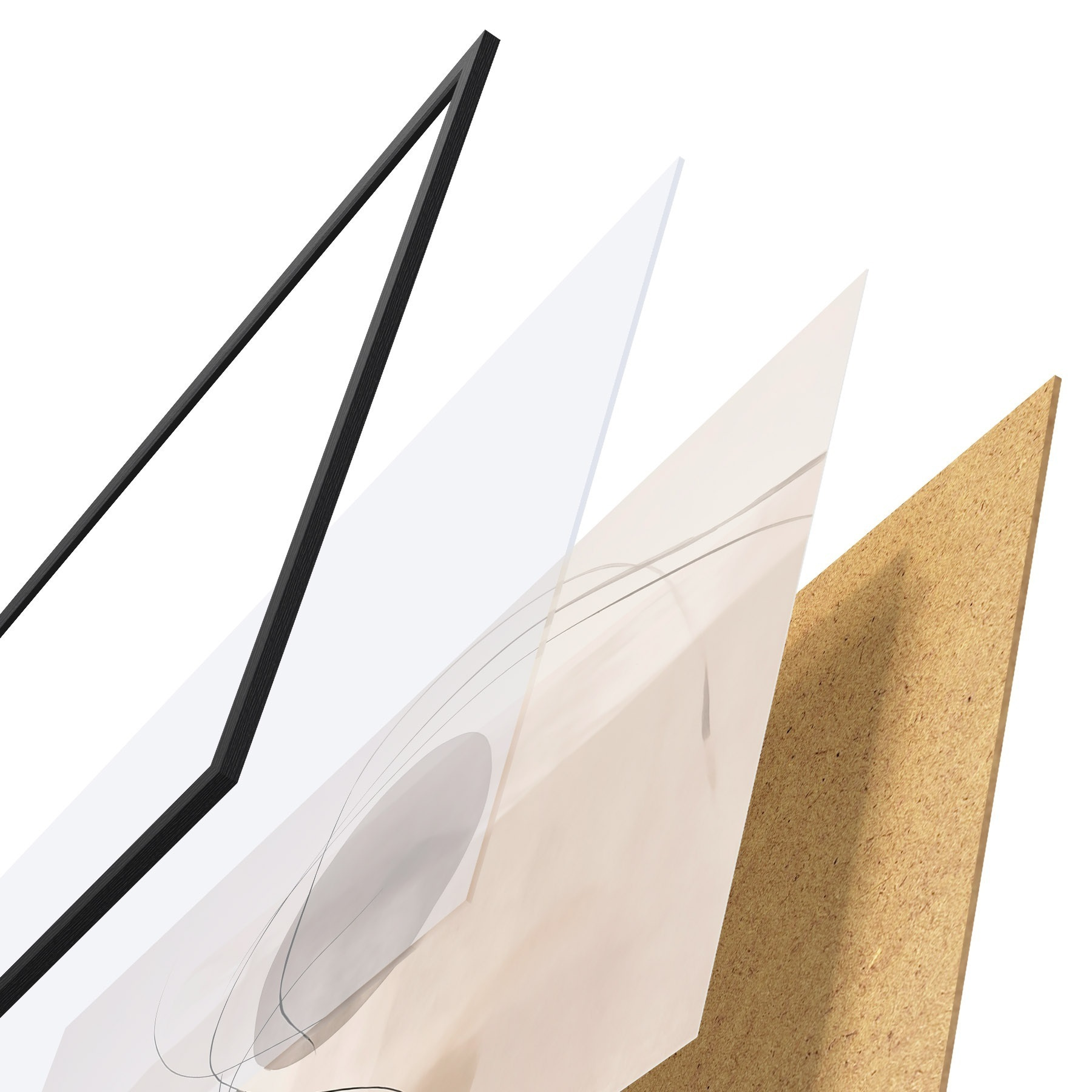 Plakat składa się z ramy, pleksi, wydrukowanego obrazu i podkładu z płyty wiórowej. Plakat można natychmiast zawiesić na ścianie dzięki uchwytom z tyłu.