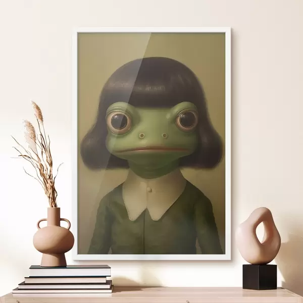 Poster Dziewczyna w stylu vintage z żabką Nr f46458