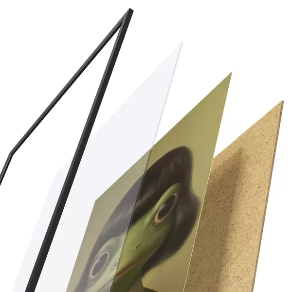 Plakat składa się z ramy, pleksi, wydrukowanego obrazu i podkładu z płyty wiórowej. Plakat można natychmiast zawiesić na ścianie dzięki uchwytom z tyłu.
