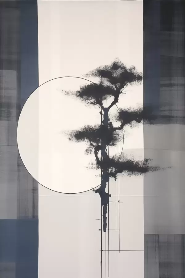 Poster Abstrakcja. Drzewo i słońce. Japoński minimalizm Nr f46463