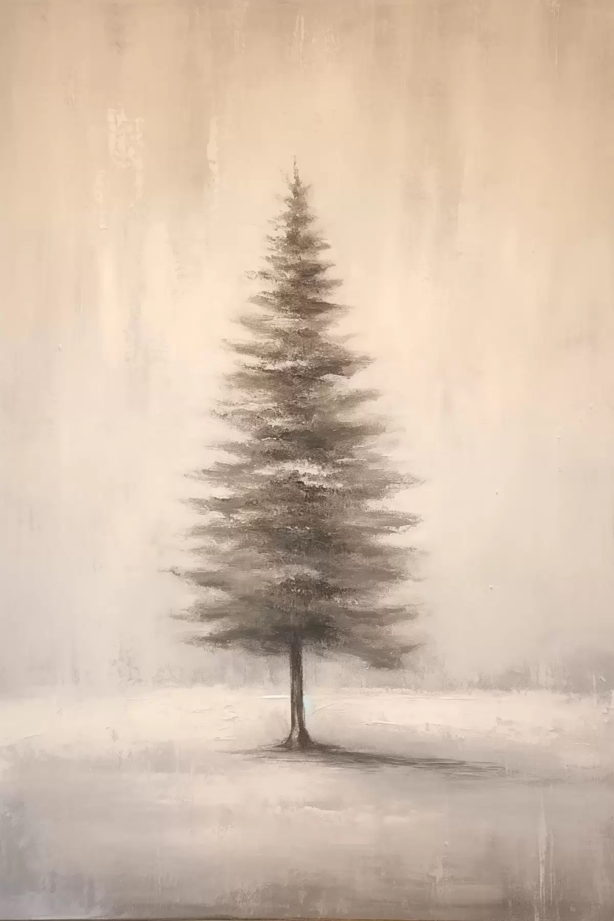 Poster Monochromatyczna jodła. Minimalistyczny zimowy krajobraz Nr f46465