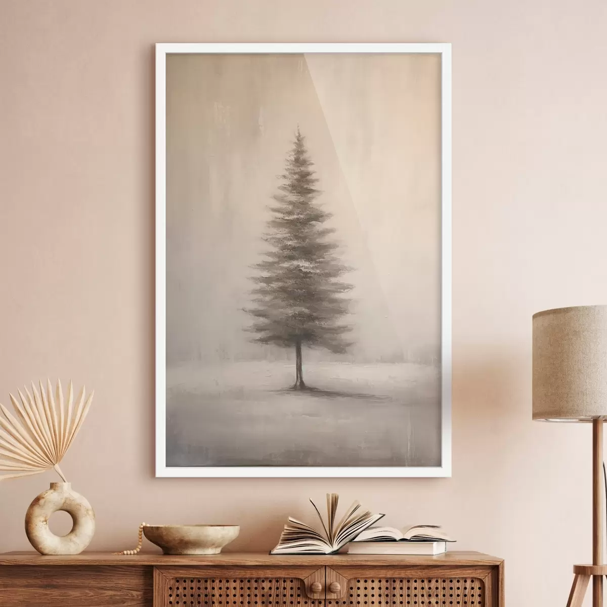 Plakat Monochromatyczna jodła. Minimalistyczny zimowy krajobraz f46465