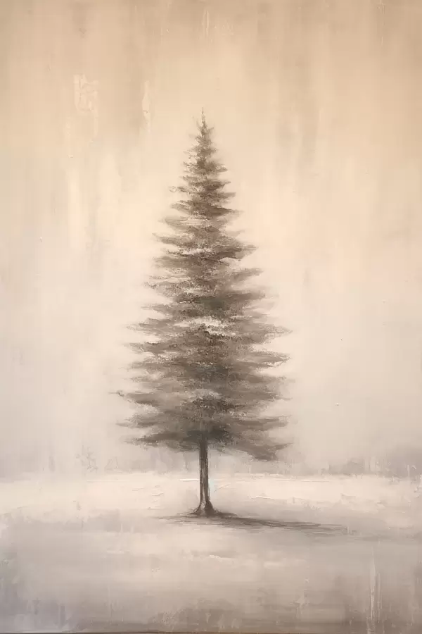 Poster Monochromatyczna jodła. Minimalistyczny zimowy krajobraz Nr f46465