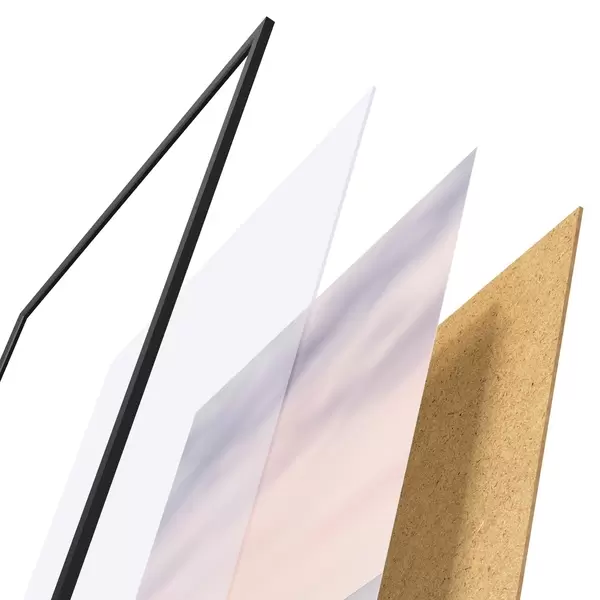 Plakat składa się z ramy, pleksi, wydrukowanego obrazu i podkładu z płyty wiórowej. Plakat można natychmiast zawiesić na ścianie dzięki uchwytom z tyłu.