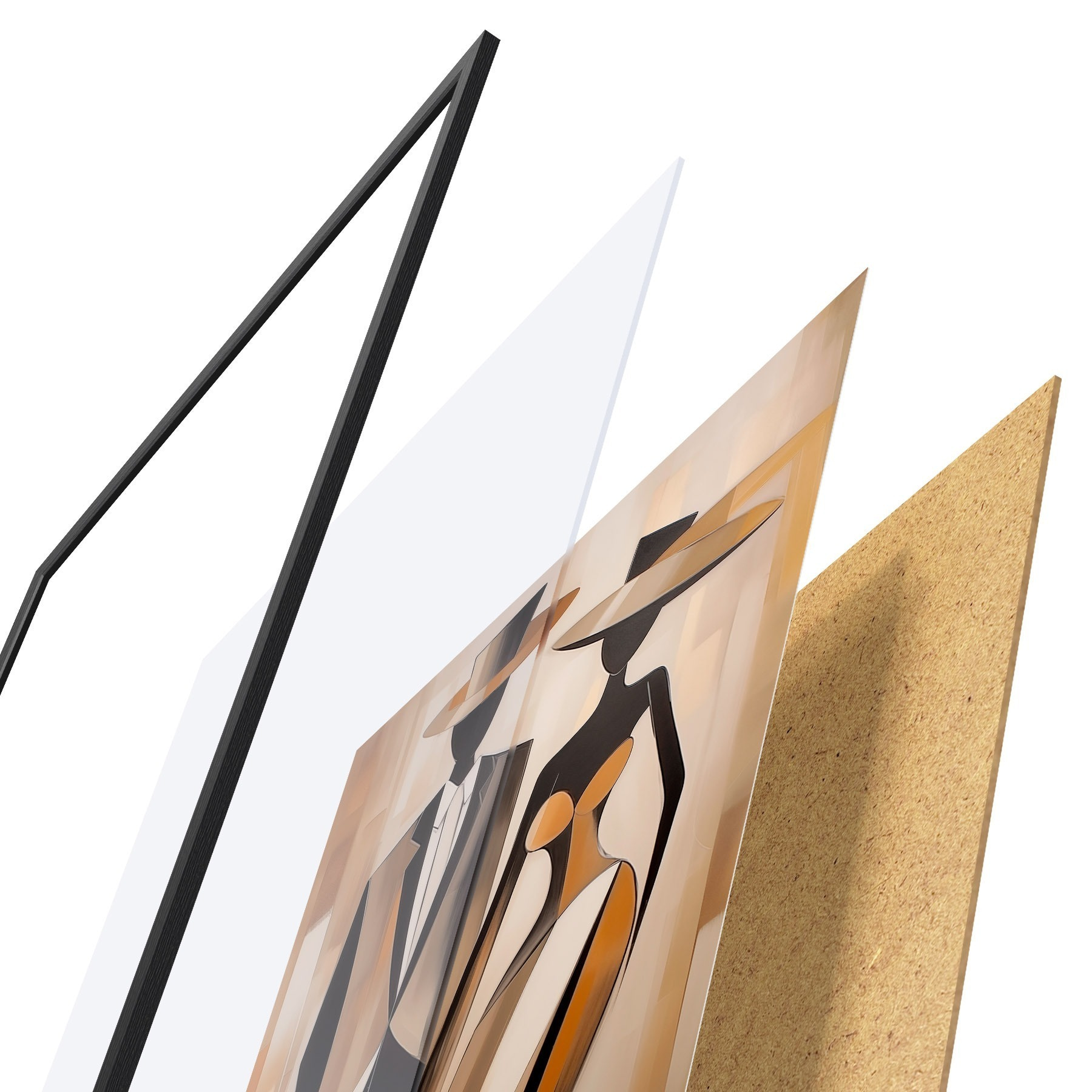 Plakat składa się z ramy, pleksi, wydrukowanego obrazu i podkładu z płyty wiórowej. Plakat można natychmiast zawiesić na ścianie dzięki uchwytom z tyłu.