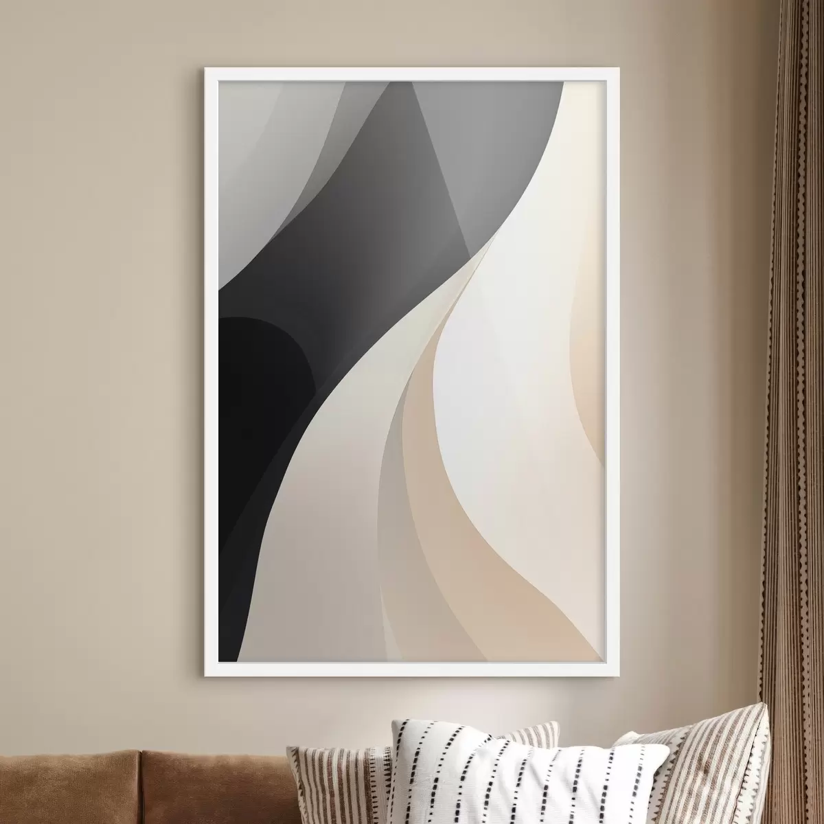 Plakat Eleganckie, nakładające się na siebie krzywizny w kolorach grafitowym, kości słoniowej i piaskowym f46493