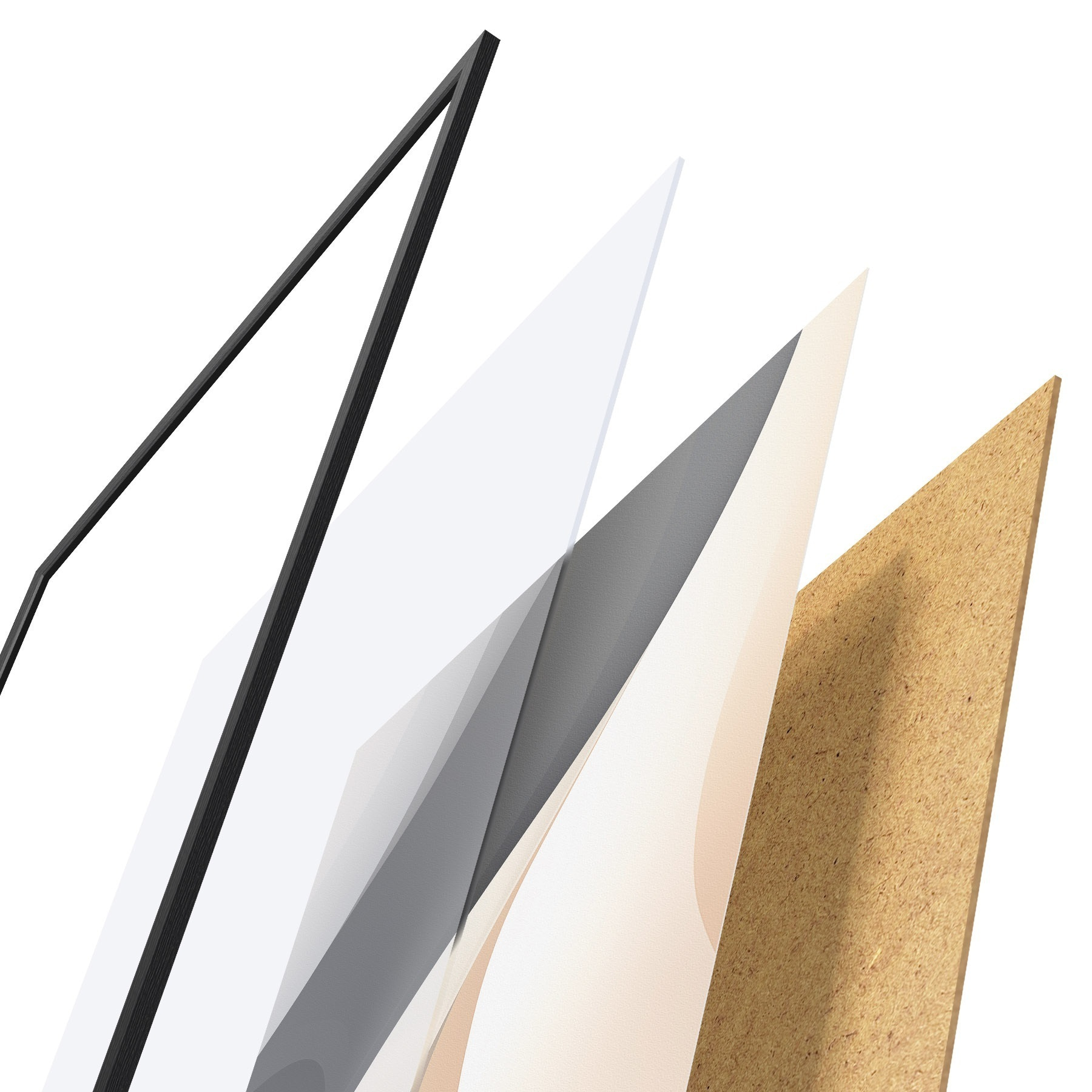 Plakat składa się z ramy, pleksi, wydrukowanego obrazu i podkładu z płyty wiórowej. Plakat można natychmiast zawiesić na ścianie dzięki uchwytom z tyłu.