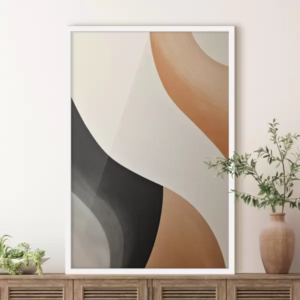 Plakat Wyrazista linia w kształcie litery S w kolorze kremowym, czarnym i z akcentami w kolorze terakoty f46495