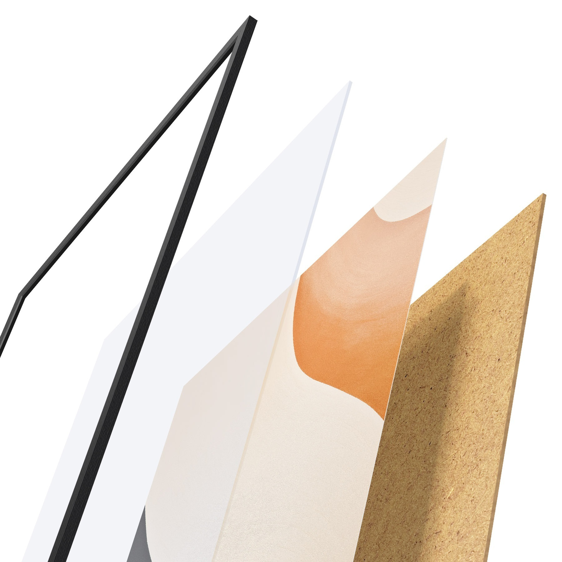 Plakat składa się z ramy, pleksi, wydrukowanego obrazu i podkładu z płyty wiórowej. Plakat można natychmiast zawiesić na ścianie dzięki uchwytom z tyłu.