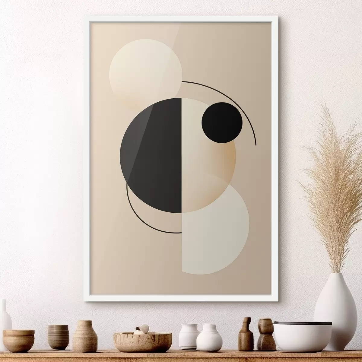 Plakat Graficzne koła i łuki w delikatnym beżu i czerni f46497