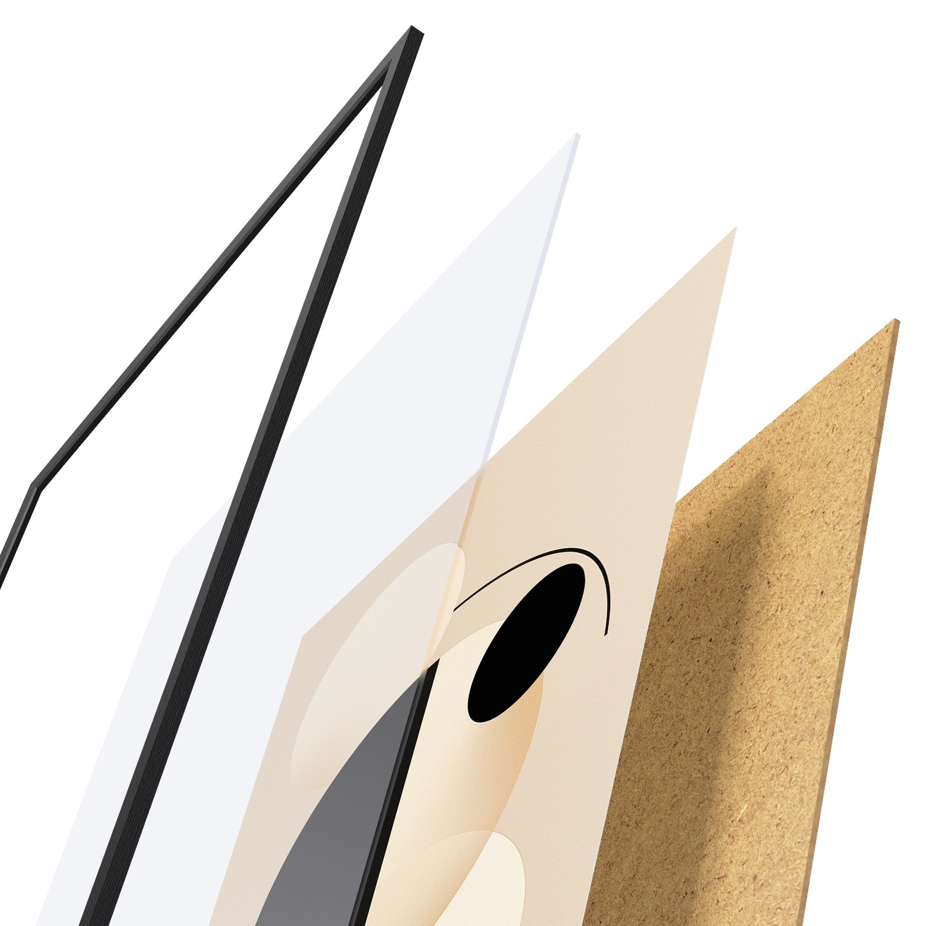Plakat składa się z ramy, pleksi, wydrukowanego obrazu i podkładu z płyty wiórowej. Plakat można natychmiast zawiesić na ścianie dzięki uchwytom z tyłu.