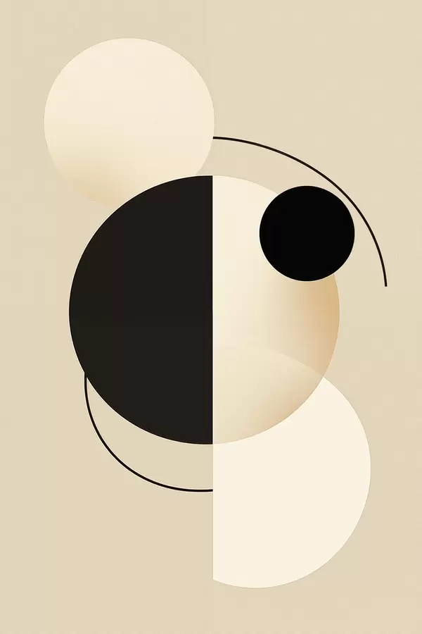 Plakat Graficzne koła i łuki w delikatnym beżu i czerni f46497