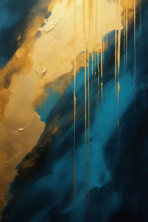 Poster Turkusowo-granatowy abstrakcyjny wzór z płynnymi, ciepłymi akcentami Nr f46509