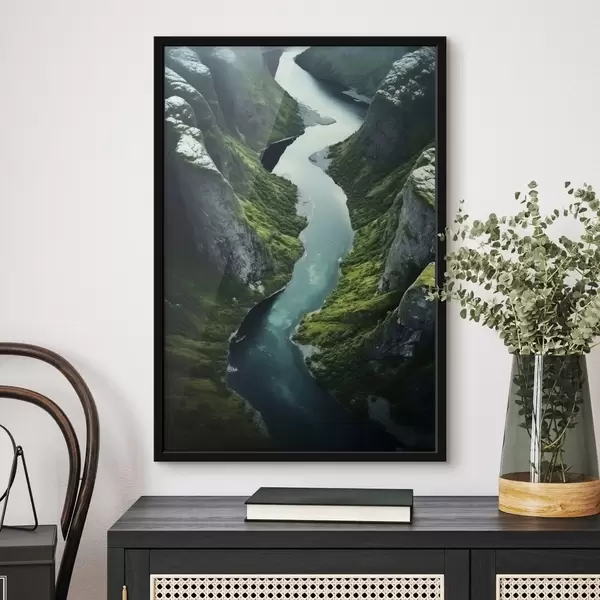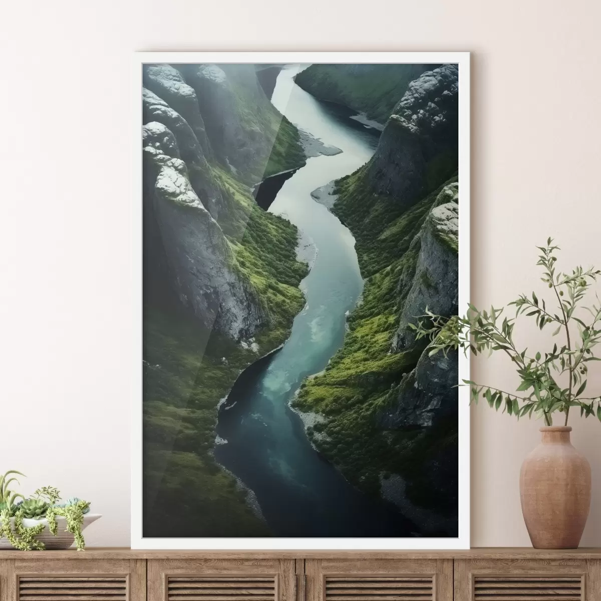 Poster Meandrująca rzeka między klifami, widok z lotu ptaka Nr f46521