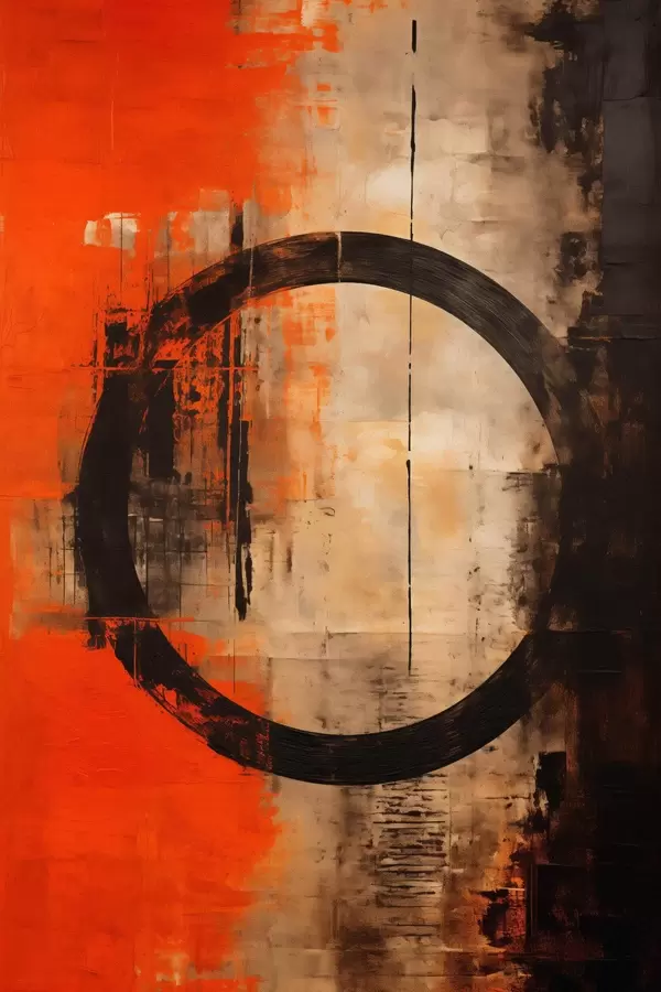 Poster Abstrakcja z dużym czarnym okręgiem i ciepłymi teksturami Nr f46528