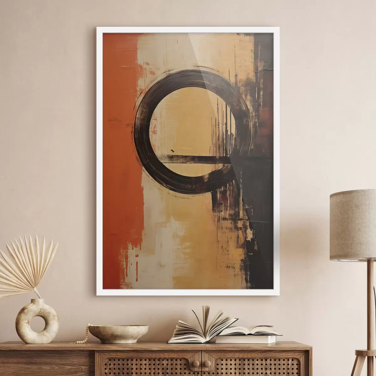 Poster Abstrakcja z czarnym pierścieniem na tle w kolorze terakoty i piasku Nr f46529
