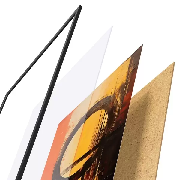 Plakat składa się z ramy, pleksi, wydrukowanego obrazu i podkładu z płyty wiórowej. Plakat można natychmiast zawiesić na ścianie dzięki uchwytom z tyłu.